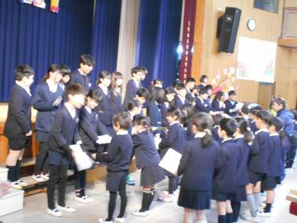在校生から卒業生にあてたメッセージをプレゼントしました。