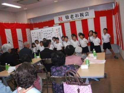難波地区の敬老会に参加してきました。日ごろお世話になっている地域の方々にお祝いを伝え、歌を2曲歌いました。「虫のこえ」の歌は、みなさんもいっしょに口ずさんでくださいました。たくさんの拍手をいただき、子ども達もニコニコでした。これからも子ども達を見守ってください。
