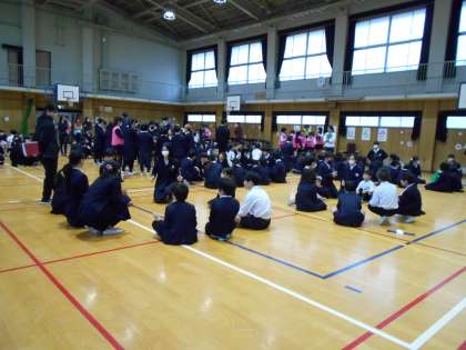 1、2時間目に卒業生を送る会を行いました。1年生から6年生全員でゲームを楽しんだり、1年生から5年生が作った感謝の気持ちを込めたメッセージカードを6年生に渡したりしました。6年生からはお礼として素晴らしい合唱と合奏の披露と各学年にプレゼントがありました。6年生のみなさん、難波元町小学校のリーダーとして本当によくがんばりました。ありがとう。そして、卒業おめでとう。