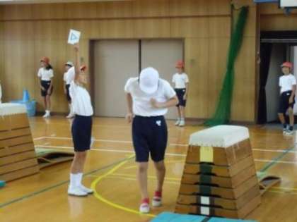 子ども達は、熱心に練習しています。また、友達がきちんと跳ぶことができているのかチェックし、アドバイスをしながら学習を進めています。