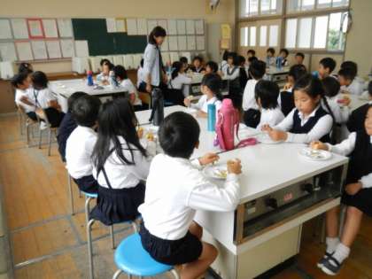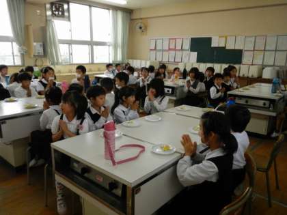 「おいしい」「めっちゃ おいしい」「すごく おいしい」「100こたべられる」など1年生は、2年生がつくってくれた スイートポテトをいただいて、感想を言っていました。2年生となかよく食べて、楽しい時間をすごしました。「早く2年生になってつくりたい」という声もありました。