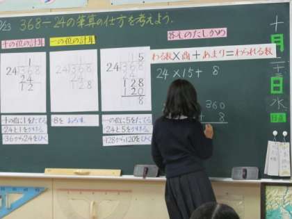 2学期初めての学習参観、4年生は算数の「わり算(2)」をしました。