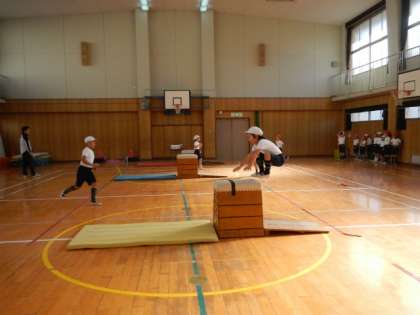 跳び箱に挑戦しました。みんな上手に跳べていました。