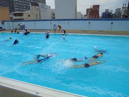 まず、教頭先生からプール学習の心得や学習の進め方のお話を聞きました。その次に、前年の復習をしました。
