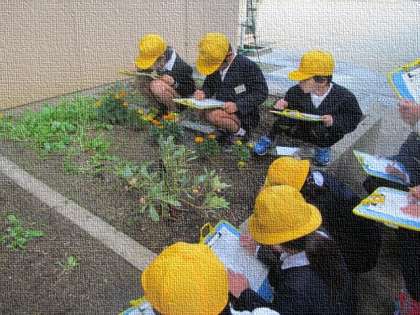 遅咲き(?)のマリーゴールドと、愛らしい花が終わり種をつけたホウセンカ、そしてお裾分けでいただき種から育てた田辺大根の観察です。
