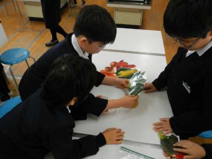 「カルビースナクスクール」で、お二人のおやつ研究員の方からおやつについて色々なことを教えて頂きました。1日のおやつの目安となる量をゲームをしながら学習したり、食育ビデオの鑑賞をしたりして、おやつの役割や量、時間などについて知りました。また、パッケージの表示の見方も教えて頂き、自分でお菓子を選ぶ時に気を付けるとよいことも学習しました。何気なく食べていたおやつについて沢山のことを知り、子ども達にとっては、有意義な60分でした。