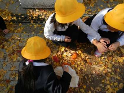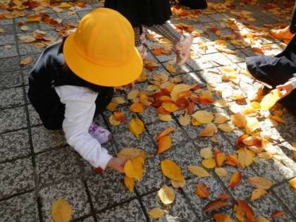 黄色いイチョウのはっぱや 赤くなったサクラのはっぱを