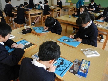 4年生の時にきちんと学んでいるため、みんな上手に彫っています。