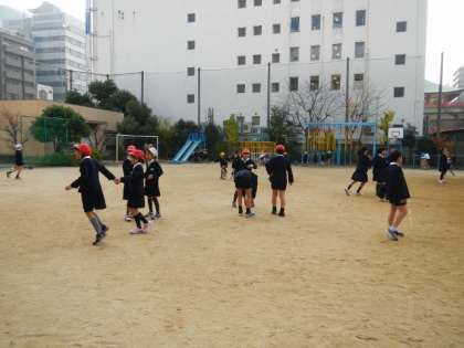 今日は、「増え鬼」です。鬼になった子は、男子、女子関係なく一生懸命追いかけ、他の子は捕まらないように一生懸命逃げます。