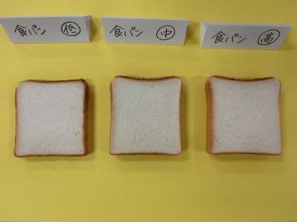 毎年、この時期にPTA給食試食会が開かれます。今回は、『大阪市の学校給食について』と『子どもに不足しがちな栄養素』についての講話と、食育体験活動の紹介、パンの実物による大きさ比較の展示を行いました。