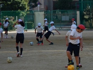 また、サッカーでは二人組を作って、相手のドリブルボールを奪おうと懸命に追いかけています。