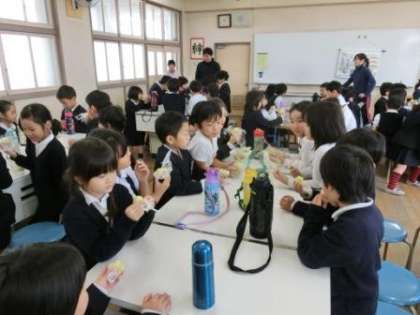 そして、2年生手作りのさつまいもの茶きんしぼりをみんなで食べました。とってもおいしいー!