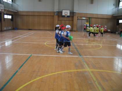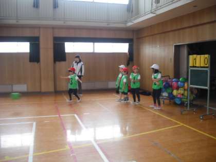 いつもは、縦割り遊びの時にしているドンピーボールを