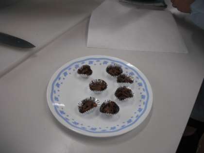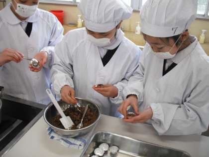 クラブ活動の時間に、チョコレートと玄米フレークで手作りチョコを作りました。