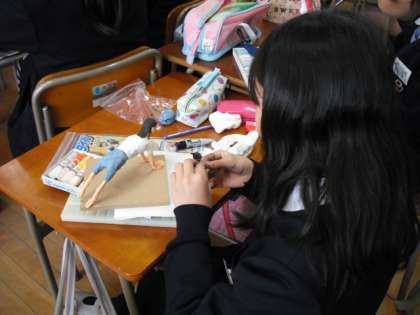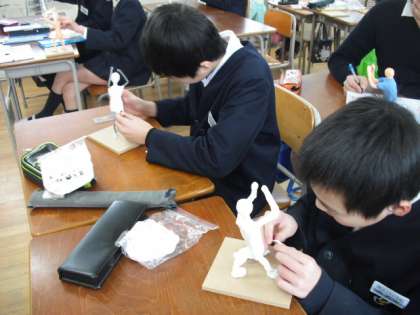6年生が今、図工で取り組んでいるのは芯材と粘土で表現する「スポーツしている私」です。