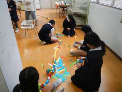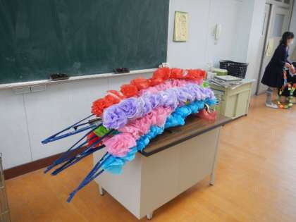 来週の送る会に向けて、会場のかざり作りや花のアーチの修理を行いました。