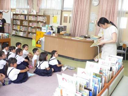今年度は毎週金曜日、図書館補助員の方に来ていただき、書籍の整理、ブックトーク、おすすめの本の紹介などをしていただいています。今日は1年生の子どもたちに、絵本の読み聞かせをしてもらいました。お話を知っている子は続きを言いたくてうずうず…けれどじっとがまん。初めてストーリーにふれる子は、次のページで何が起こるのかわくわく。