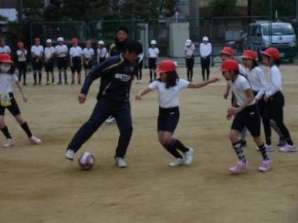 セレッソ大阪の方に来校していただき、サッカーを一緒に行う機会がありました。