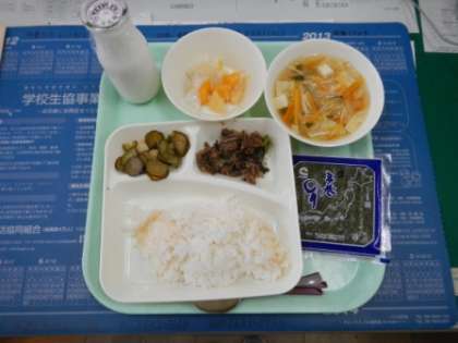 友だちと楽しく給食時間を過ごしました。
