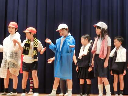 低学年はとってもかわいい演技や歌、高学年は長いセリフもしっかり覚え、堂々と言うことができていました。どの子どもも緊張しながらも力いっぱい取り組み、終わった後は満足そうな笑顔でいっぱいでした。
