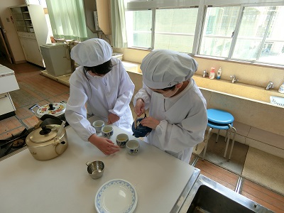 お茶を入れたり、卵をゆでたりしました。