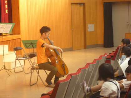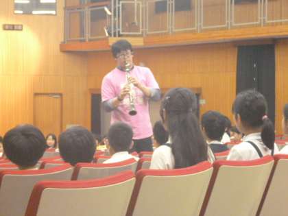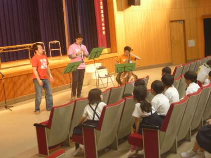 5月16日(水)、「音楽鑑賞会ワークショップ」を行いました。「仙台フィルハーモニー管弦楽団」から、ピアノ・チェロ・クラリネットの方々と、テノール歌手の方が代表で来てくださいました。