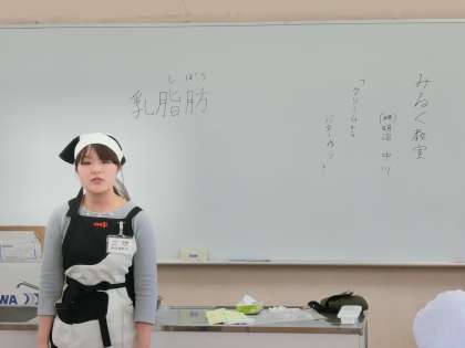 ・(株)明治の方をゲストティーチャーとして来ていただき、