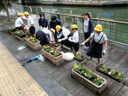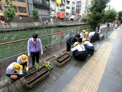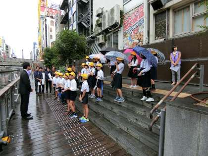 道頓堀両サイドの遊歩道を管理している南海電気鉄道(株)なんば・まち創造部よりお声掛けがあり、5年生が出かけました。