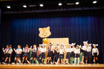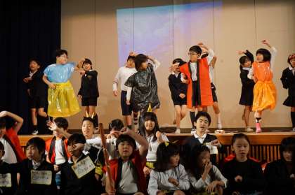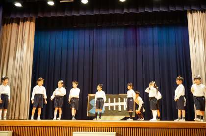 子ども達は本番をむかえるまで、教室や講堂での練習はもちろん、小道具や衣装を作るなど当日に向けて一生懸命取り組んできました。