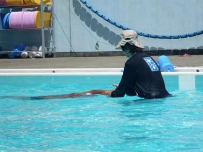 泳ぐのが苦手な子を対象に4日間チャレンジプールを行っています。今年も子ども一人に指導者一人。とても行き届いた指導ができ、参加した子どもたちの泳ぐ力は確実に伸びています。