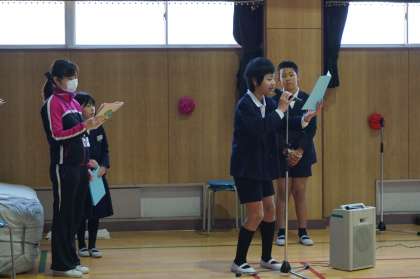 午前9時から午前10時半まで体育館で「卒業生を送る会」を行いました。