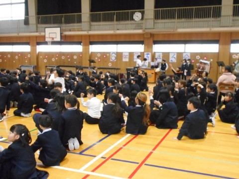 6年生からはお返しに合唱と合奏の披露とプレゼントの贈呈がありました。6年生のみなさん、これまで難波元町小学校で学んだことを胸に、中学校でももっともっと成長してほしいと思います。