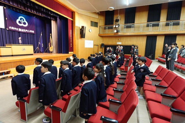 入学式の中では、元気よく礼をしたり、あいさつしたりすることができました。