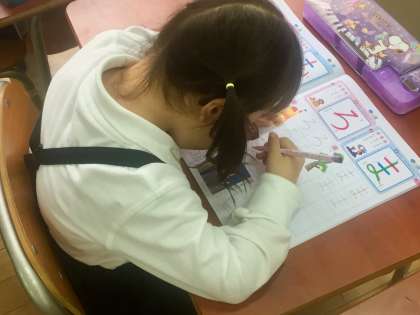 1年生は、ひらがなを丁寧に書いています。何事も最初が大切です。きっときれいに書けるようになります。