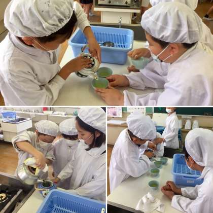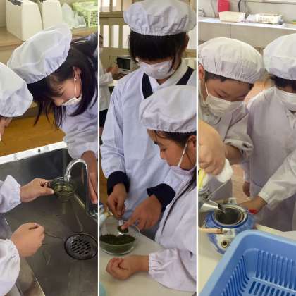 5年生から始まる家庭科。今日は、お茶の入れ方、お茶会のし方を学びました。お茶をおいしく、ゆっくりと味わう体験をしました。