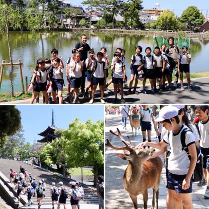 6年生は、自分たちだけで行ける遠足にワクワクしていました。奈良町をぬけて猿沢の池から興福寺、奈良県庁屋上、そして東大寺にむかう中で、そのワクワク感は高まっていきました。