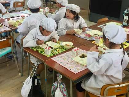 今日の給食は、ちくわのいそべあげ、鶏肉と一口がんもの煮物、あっさりキャベツでした。2年生は係の人に配膳をしてもらうまで、本を読んでいる子が多いです。とてもいい光景です。