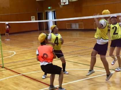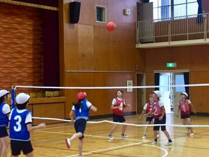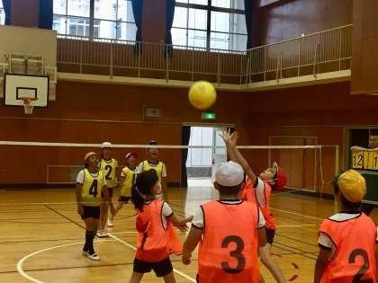6年生がソフトバレーの練習をしています。楽しそうにボールを追いかけていました。