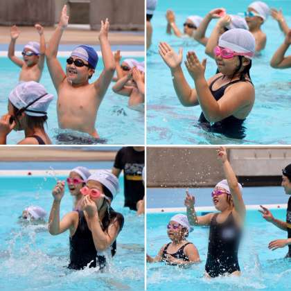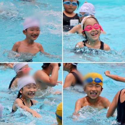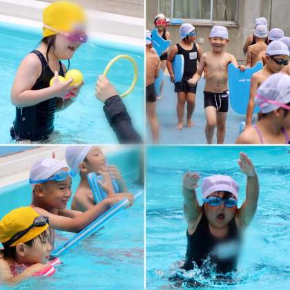 1年生は、すっかり小学校のプールにもなれました。ビート板をつかって、泳ぐ練習も始めています。