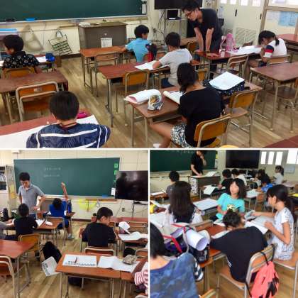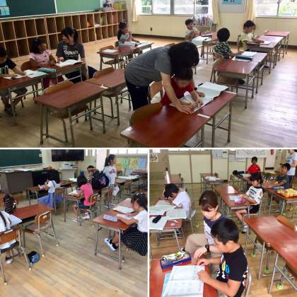 プール指導は、天候不順で中止になりましたが、オープン教室は開いています。みんな夏休みの課題をもって、学校にやってきました。