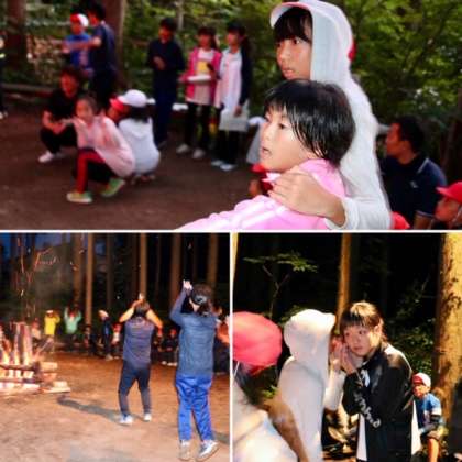 いつの間にか、あたりは真っ暗になっていました。赤々と燃えていたキャンプファイアの火も自然の中に帰っていきました。1日目のプログラムは、全て予定通りに実施することができました。これから入浴して、1日の汗を洗い流したいと思います。