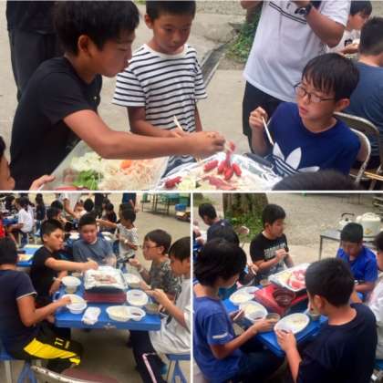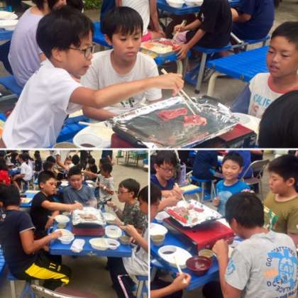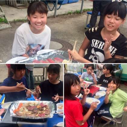 2日目の夕食は、バーベキューでした。グループごとに、工夫しながら、上手に焼いて食べていました。