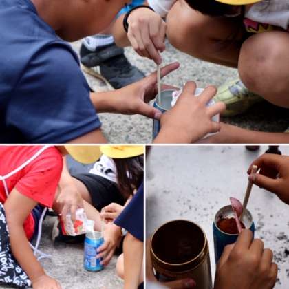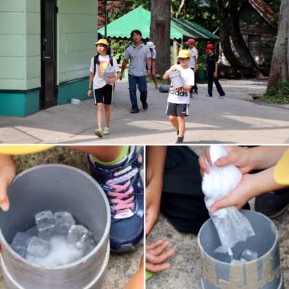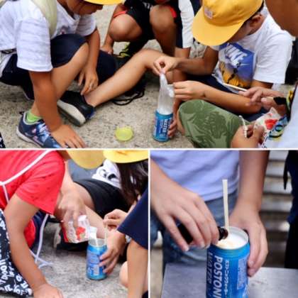 アイスクリーム作りが始まりました。しっかりと説明を聞いて、アイスクリーム容器の蓋を閉めました。