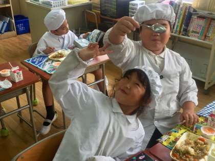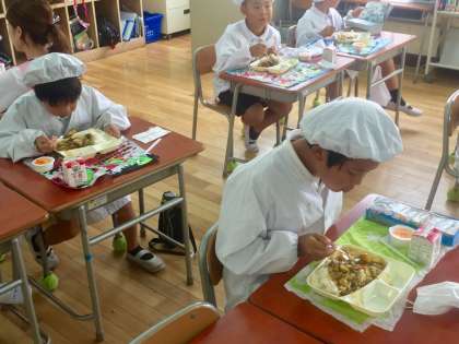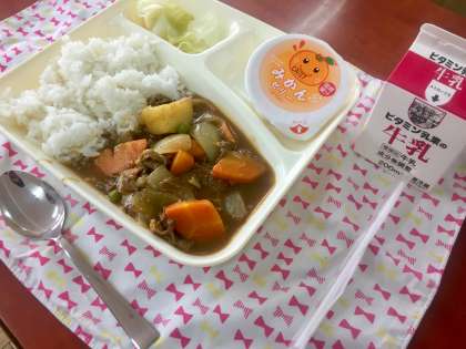 今日の給食は、ビーフカレーライス、野菜のピクルス、みかんゼリーでした。子どもたちが大好きな献立が続きます。明日は焼きそばです。お楽しみに。