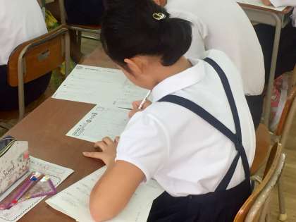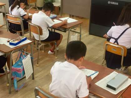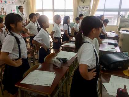 2学期からは、月曜と木曜日の朝会や集会を行わず、グッとタイムにあてています。8時40分には、4分半の音読、間髪を入れず3分間の100マス計算、3分間の漢字練習と1分半のテスト、1分間の答え合わせと続きます。集中しているクラスでは、私語はまったくありません。