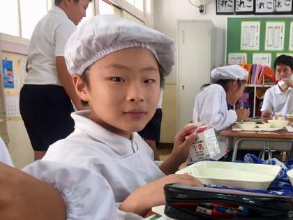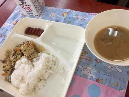今日の給食は、他人丼、とうがんのみそ汁、金時豆の煮ものでした。めずらしいとうがんの食感を味わいながらの楽しい時間でした。