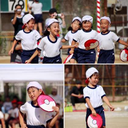 大方の予想をくつがえして青空の下の運動会。子どもたちの笑顔がはじけました。