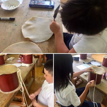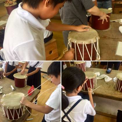 地域にある坂東太鼓店のご協力のもと、今年も5年生が太鼓作りに取り組みました。先輩たちも作ってきた自分の太鼓で、大国小学校伝統の響きを受け継いでいきます。