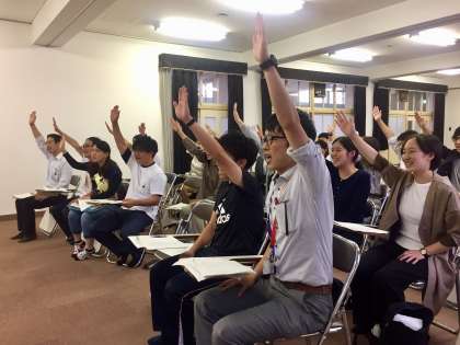 先生たちも石橋先生から、しっかりと音読を学びました。やはり、先生もいっしょになって楽しむことが一番大切なことだと思います。楽しいから継続することができるし、工夫するところも生まれてきます。