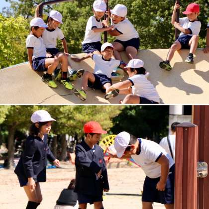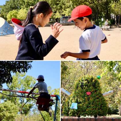 食事が終わって、休憩をしたら、子どもたちは遊具めざして走っていきました。春の遠足と比べて、身体も大きくなり、体力もついてきました。秋の自然とたっぷりとふれあった遠足でした。